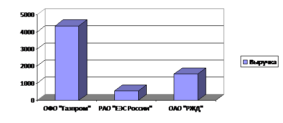 Выручка ОАО «Газпром», РАО «ЕЭС России» и ОАО «РЖД» за 2012г