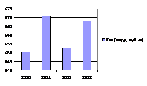 Добыча газа за 2010 - 2013 гг. в Российской Федерации