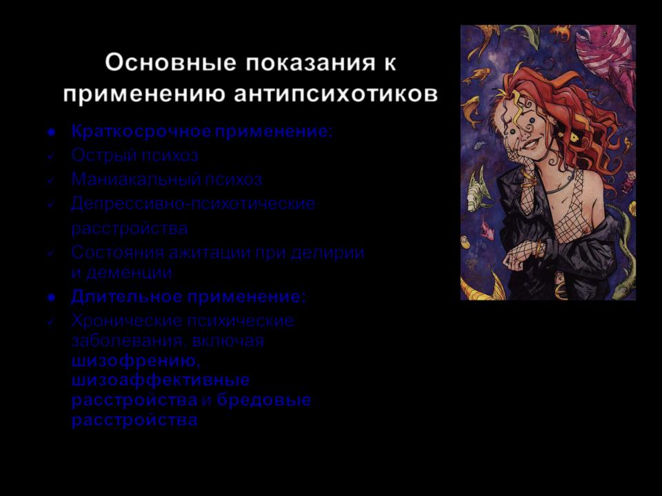 Основные показания к применению антипсихотиков