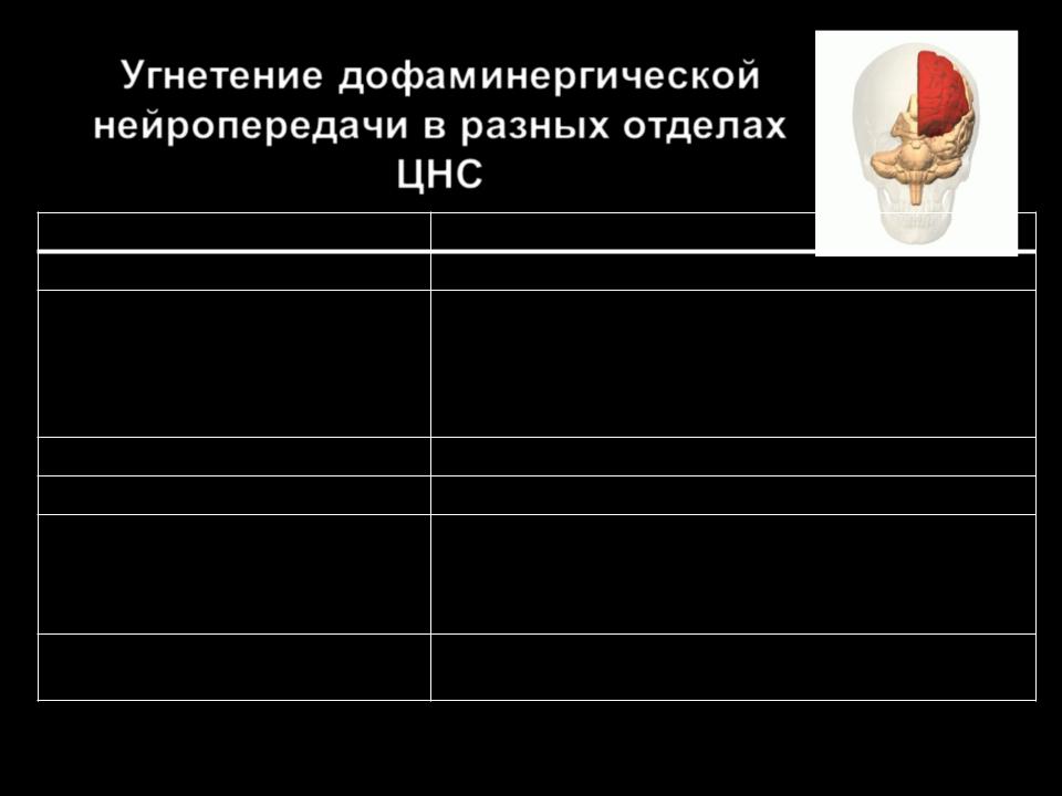 Угнетение дофаминергической нейропередачи в разных отделах ЦНС