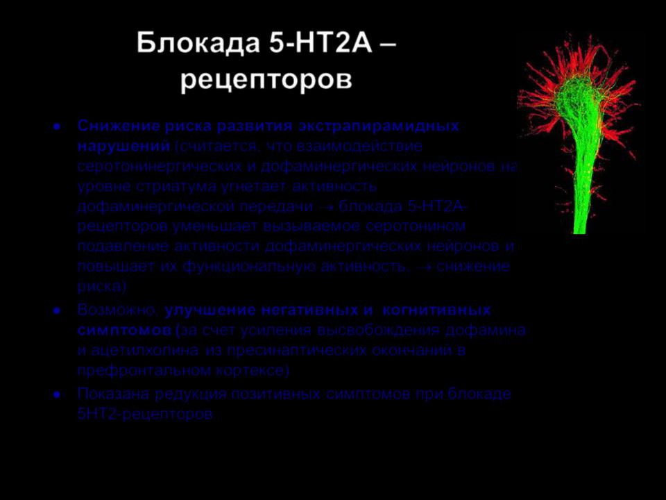 Показана редукция позитивных симптомов при блокаде 5HT2-рецепторов