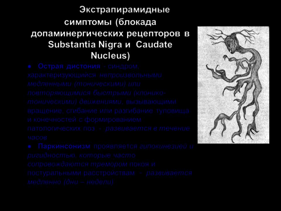 симптомы (блокада допаминергических рецепторов в