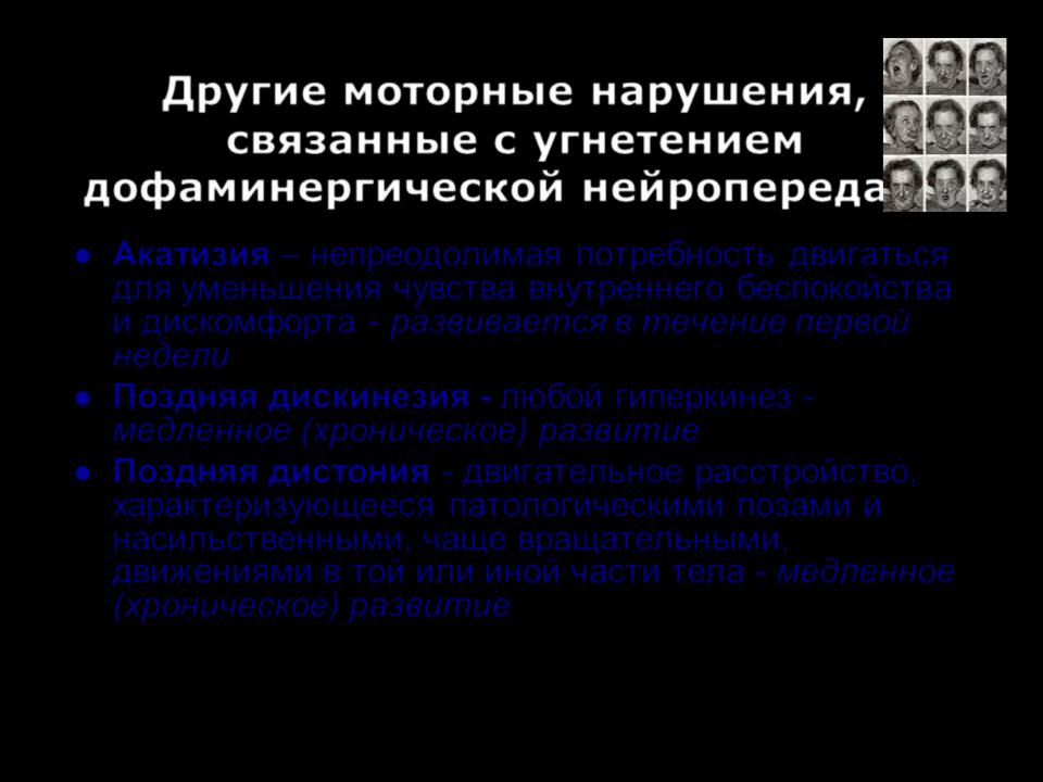 Другие моторные нарушения, связанные с угнетением дофаминергической нейропередачи