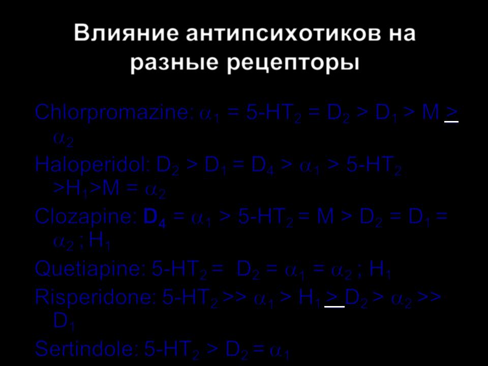 Влияние антипсихотиков на разные рецепторы