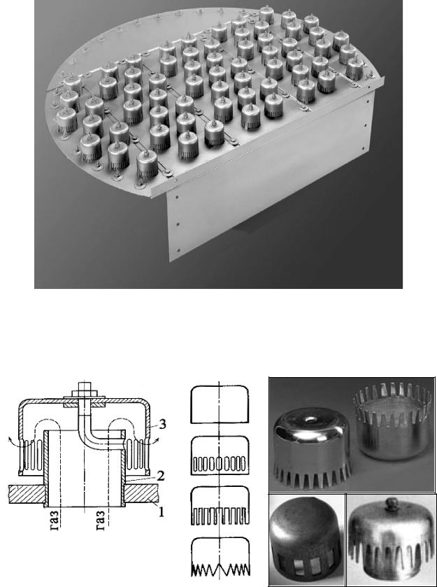 1 – тарелка; 2 – газовые патрубки; 3 – круглые колпачки