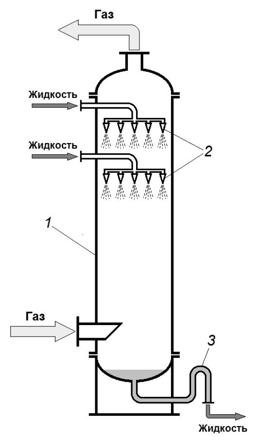 1 – корпус; 2 – форсунки; 3 – гидрозатвор