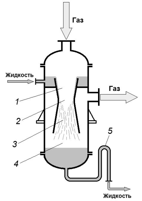 1 – конфузор; 2 – горловина; 3– диффузор; 4 – сепаратор; 5 – гидрозатвор