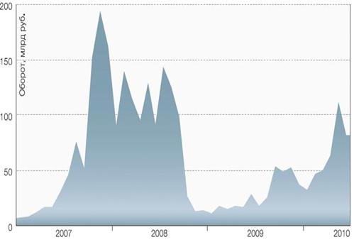 Рис. 2.7 Объем торгов опционами на фьючерсные
