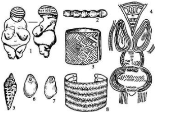 Зразки образотворчого мистецтва (І, 2, 4) та прикраси (3, 5-8) пізнього палеоліту.