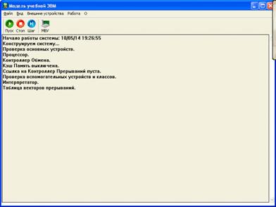 В программной модели учебной ЭВМ использован стандартный интерфейс Windows, реализованный в нескольких окнах: Процессор, Память, Текст программы, Программа.