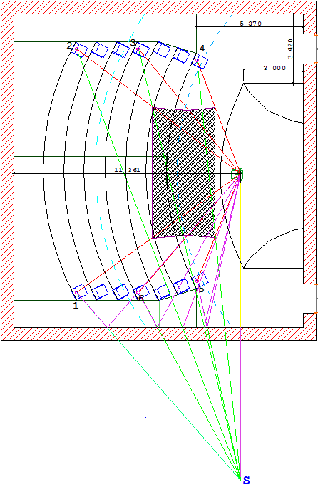 точки L1, (от источника до 1 отраж) L2 (от 1