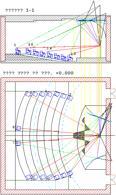 Благодаря архитектурной планировке зала: расположение кресел, форме стен, габаритов помещения, выбранным материалам с низким коэффициентом поглощения, использованию звукоотражающий экранов, обеспечивается слышимость во всех точках зала и не создаётся эхо.