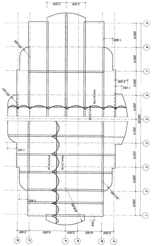 Размер здания в плане (в осях) 16×32м. С шагом несущих конструкций вдоль здания - l1=4м, поперёк - l2=6м.