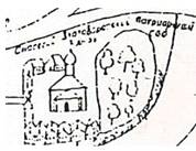 Рисунок 3. Златовратский монастырь. Фрагмент плана Владимира. 1715 г.