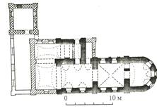сводом с алтарём во всю ширину восточного фасада, квадратный в плане, с одной