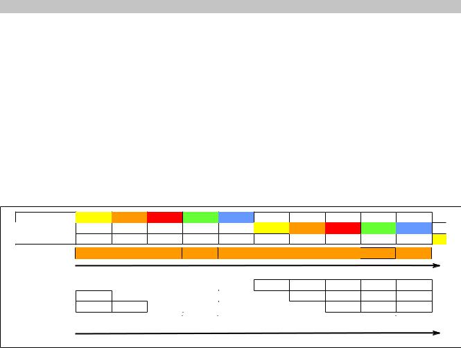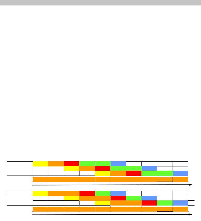 На каждом из пяти этапов (для каждой из пяти задач) задействованы разные ресурсы. Если функция ускоренной отправки не используется, последовательности выполняются одна за другой. При этом каждый ресурс активен, только если он участвует в текущем этапе.