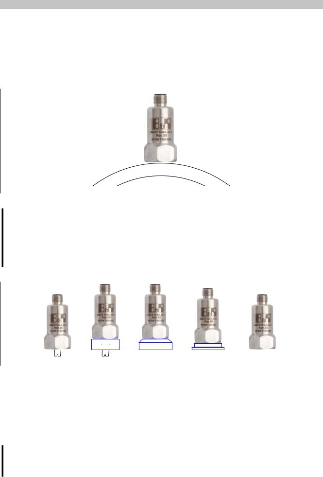 Наиболее предпочтительным способом крепления датчика является винтовое соединение, поскольку оно обеспечивает минимальный уровень затухания колебаний между датчиком и поверхностью измерения.