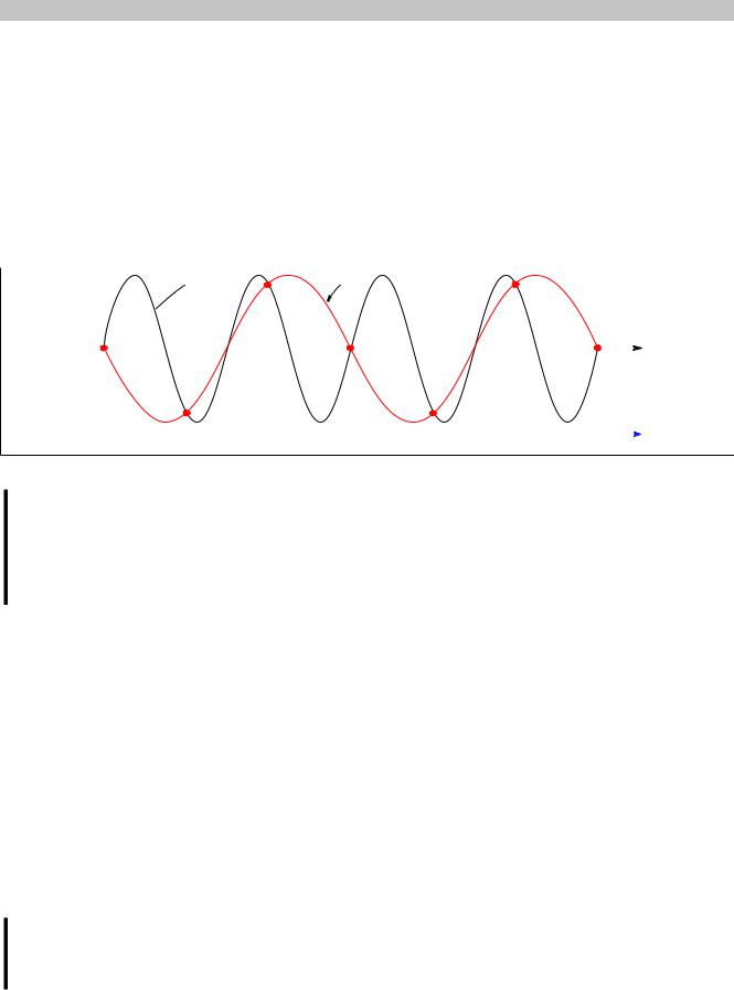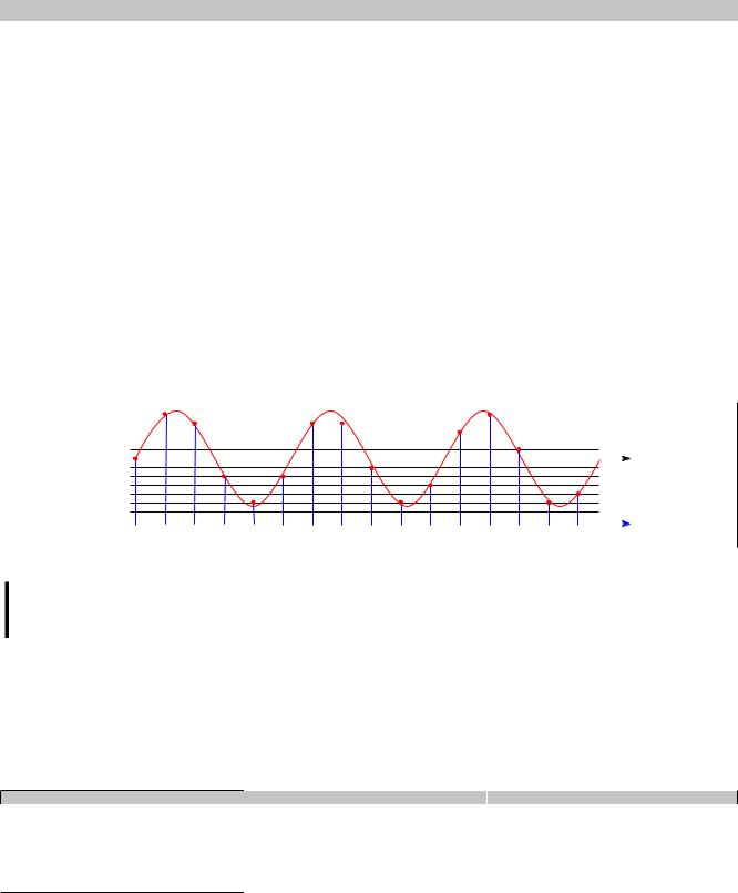 Синусоида с частотой 4 кГц, частота дискретизации 6 кГц. Красным цветом указана синусоида с частотой 2 кГц, появляющаяся из-за слишком низкой частоты дискретизации.