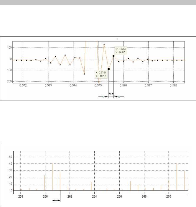 При использовании модуля X90CM480 при максимальной частоте 200 Гц расстояние между двумя линиями спектра составит 0,0629 Гц.