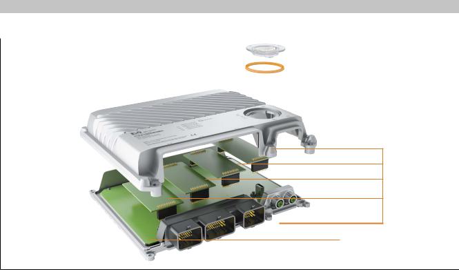 Вокне для обслуживания расположены LED-индикаторы состояния, а также, в зависимости от комплектации, аппаратный ключ TechGuard 0TG:220198.xxx-00. Мембрана для выравнивания давления, изготовленная из политетрафторэтилена (тефлона), предотвращает попадание воды, но обеспечивает прохождение пара. Благодаря этому влажность воздуха в корпусе регулируется в соответствии с влажностью наружного воздуха.