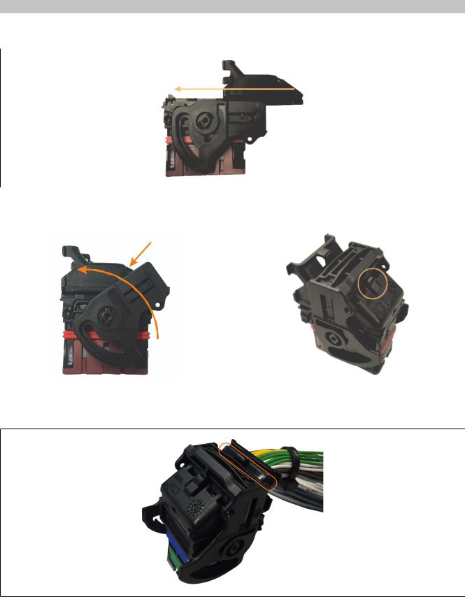 Поверните черную защелку на 90° (до щелчка), пока она не зафиксируется на крышке для проводов.