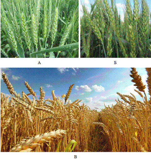периоды колошения (А), налива зерна (Б) и молочной спелости (В).