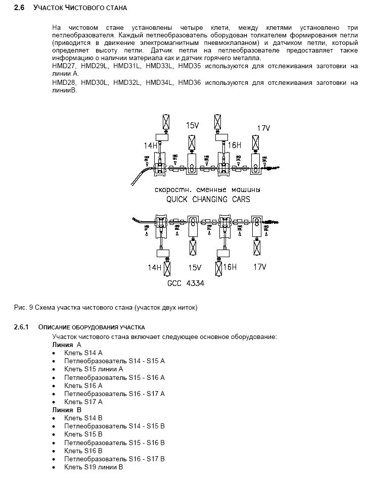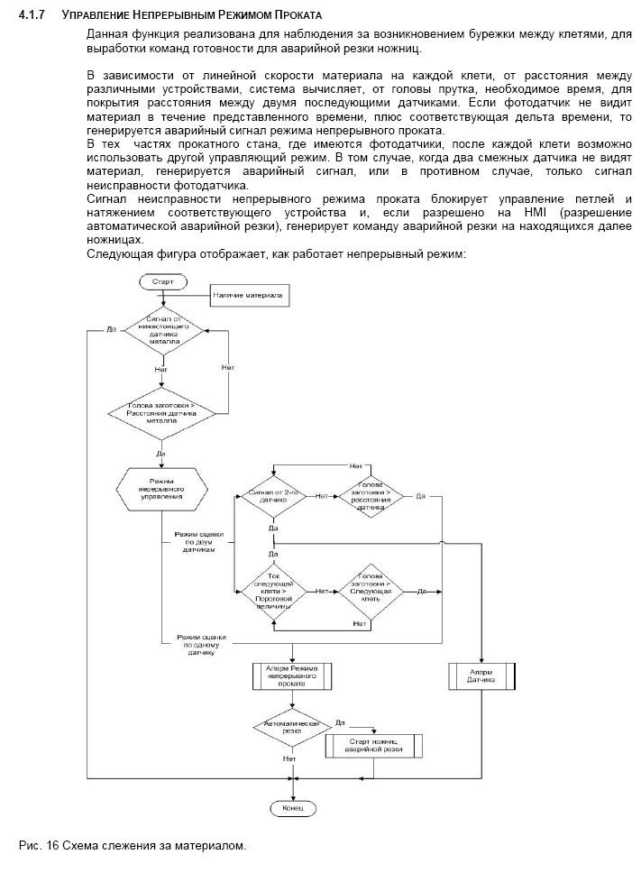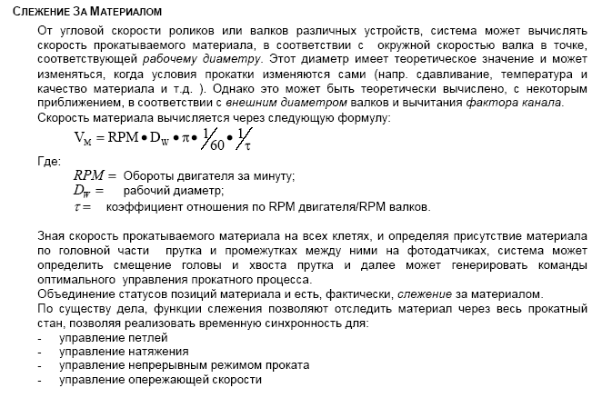 Блок слежения для каждого устройства рассчитывает расстояния для головы и хвоста заготовки от предыдущего до этого устройства. Запуск расчетов осуществляется по событиям, которые генерируются предыдущими блоками системы слежения. Такими событиями являются сигналы присутствия материала в клетях, срабатывание датчиков горячего металла, крошение заготовки ножницами.