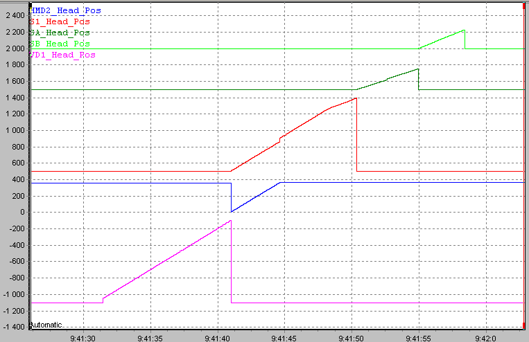 Пример расчетов и поведение счетчиков позиций для зоны слежения в начале стана показан на рисунке 3.1.