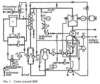 . Судовая ЯЭУ будет конкурентоспособна с судовой энергоустановкой на органическом топливе только в том случае, если ее стоимость, эксплуатационные расходы и надежность будут близки к этим показателям для обычных судов. Очевидно, что перечисленные особенности судовых ЯЭУ должны в полной мере учитываться при разработке их принципиальной схемы и оборудования.