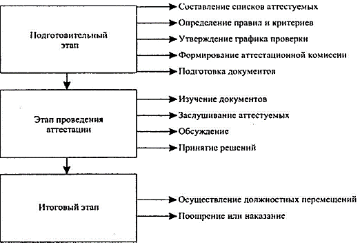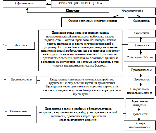 Таким образом, аттестация - это форма комплексной оценки персонала, которая служит основой для принятия решения о дальнейшем служебном перемещении по службе: переводов, продвижений, награждений, размеров его заработной платы, или возможных понижений в должности или увольнения работника.