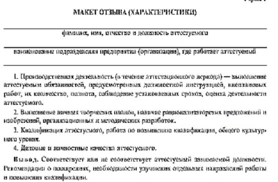 оценочные материалы (анкеты, характеристики, рекомендации) для, аттестуемых