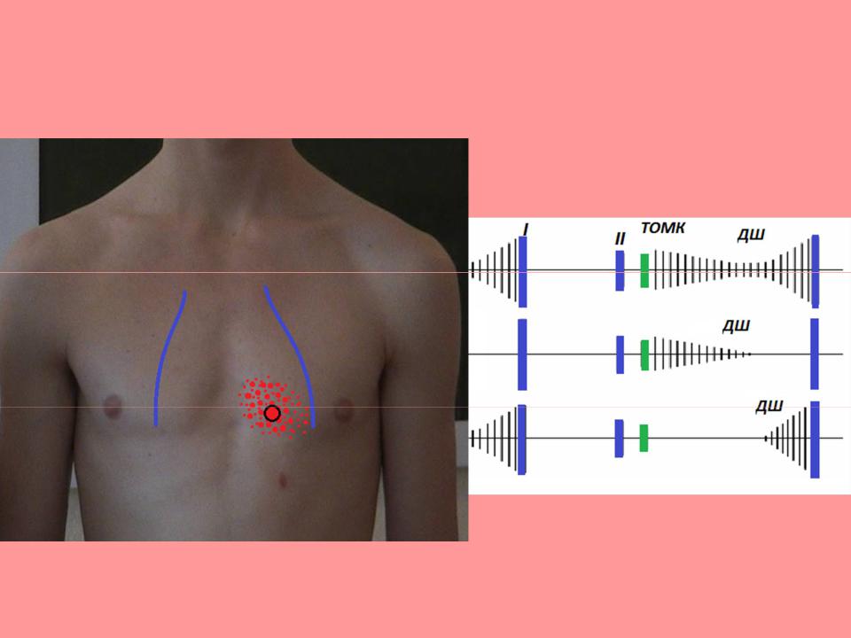 5.шум лучше выслушивается в положении в полоборота на левом боку, а также после физической нагрузки