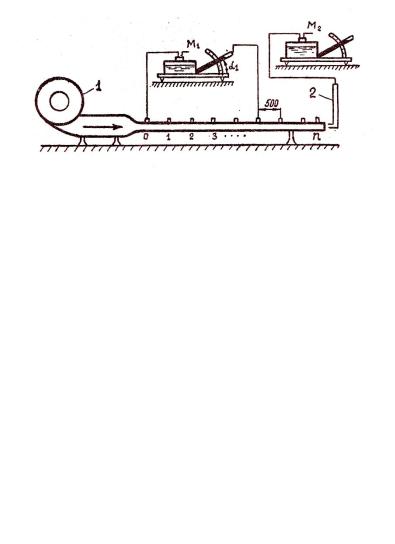 Воздух движется по круглой трубе под напором, создаваемым вентилятором 1 (рис. 10.1). Микроманометр М1 используется для измерения перепада давления по длине испытуемой трубы. С помощью микроманометра М2 и трубки полного напора 2 измеряется поле скоростей.