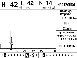 Рисунок 8 – Вид экрана дефектоскопа в режиме «Настройка»