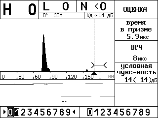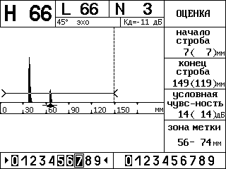 Рисунок 14 – Вид экрана дефектоскопа в режиме «Оценка»