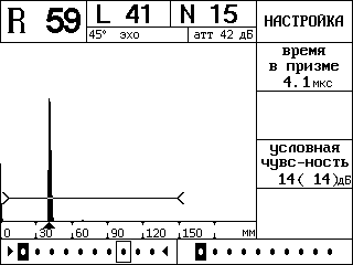 Рисунок 10 – Вид экрана дефектоскопа для корректировки времени в призме (протекторе) ПЭП