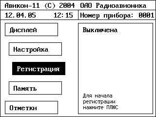 Рисунок 11 – Вид экрана дефектоскопа в меню «Меню/Регистрация».