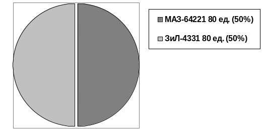 Распределение автомобилей по маркам в проектируемом АТП приведем на рисунке 1.1.