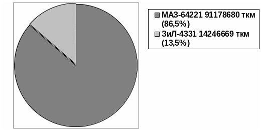 Распределение грузооборота по маркам автомобилей в проектируемом АТП приведем на рисунке 1.2.