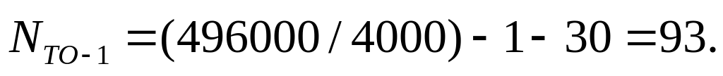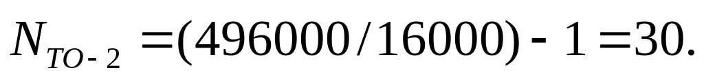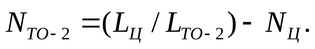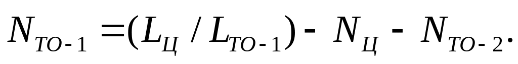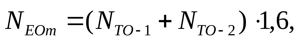 Таким образом число ТО-1 (NТО-1), ТО-2 (NТО-2), ЕОс (NЕОс), ЕОт (NЕОт) за цикл на один автомобиль рассчитывается по формулам: