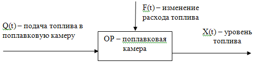 Управляющее воздействие Q(t) - подача топлива в поплавковую камеру для восстановления заданного уровня. Функциональная схема ОР и сигналы, воздействующие на него, показаны на рисунок 2.