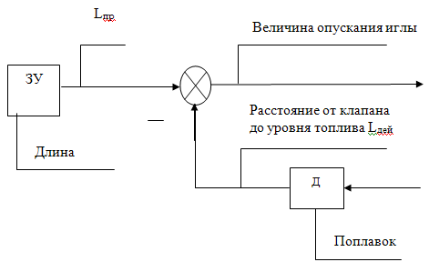 Рисунок 1 Принципиальная схема регулирования уровня топлива в поплавковой