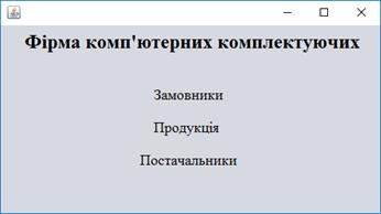Завданням курсового проекту є розробити програму автоматизації роботи фірми, що займається продажем комп’ютерних комплектуючих. Дані необхідно оформити у вигляді бази даних. В програмі повинні бути реалізовані три таблиці: