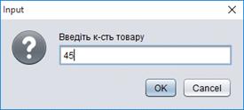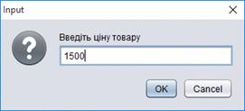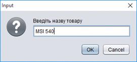 постачальника»);[1]=JOptionPane.showInputDialog («Введіть назву фірми