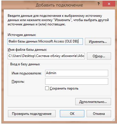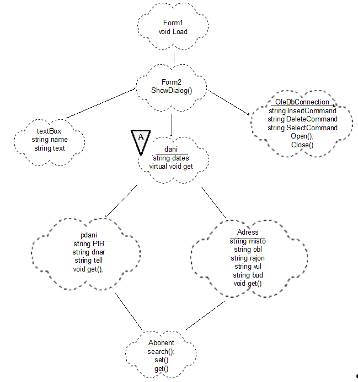 Клас Abonent передає дані отримані від класу Form2 об’єкту класу oleDbConnection.