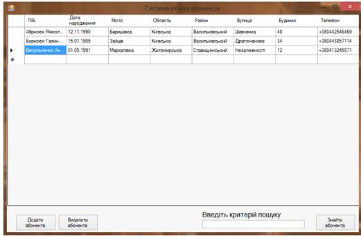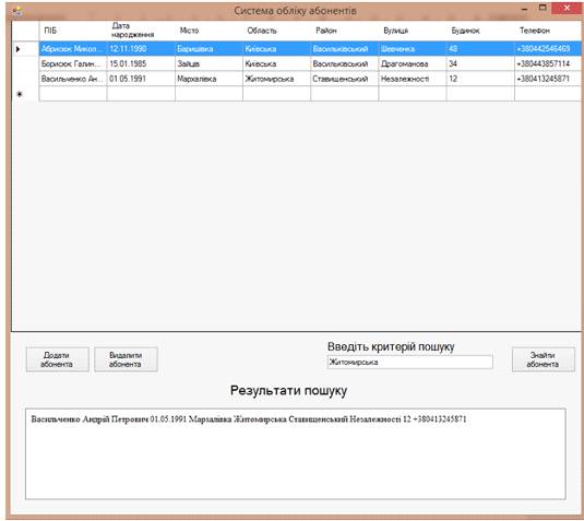 і натискаємо клавішу «знайти абонента». Результати пошуку показані на рис. 11.