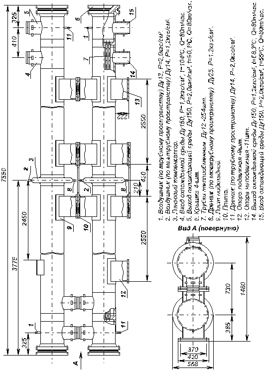складається із двох трубних решіток товщиною 40 мм, 129 труб Æ 16х1 мм, чотирьох маякових труб Æ 16х1 мм і сегментних перегородок з листа товщиною 6 мм.