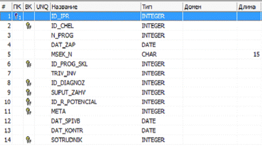 Рисунок 3.23 - Структура таблиці IPR