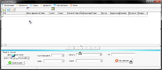 - «Авторизація» - має підпункти для виходу із програми та для реєстрації нового користувача;