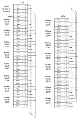 Представим схемы соединения контроллера на рисунке 3.4, подключение портов на рисунке 3.5. На рисунке 3.6 изображена схема подключения дискретных сигналов, а на рисунке 3.7 - схема шлейфа порта RS-485 для "ЭЦН-16".